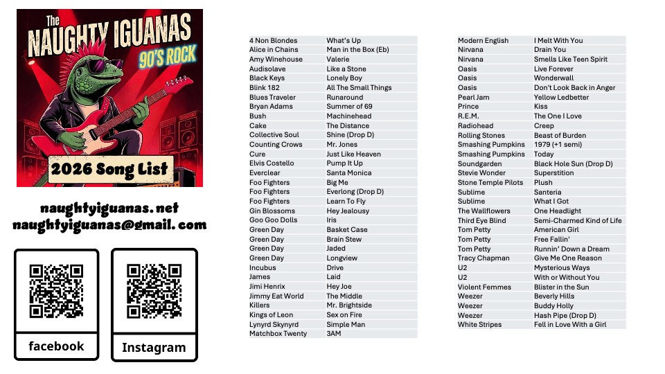 The Naughty Iguanas are a 90's rock band playing great music from a great decade.